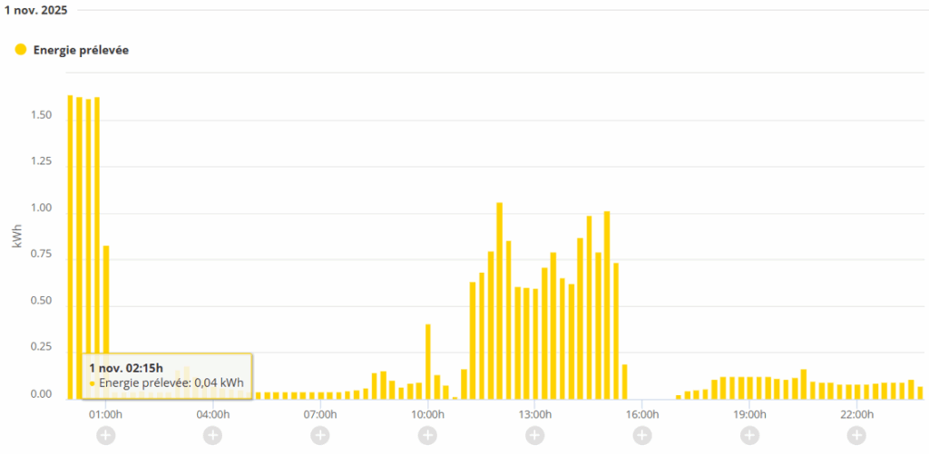 - En accédant aux données via une application développée par votre gestionnaire de réseau, mais affichées en J+1 (le GRD ne télérelève les compteurs qu’une seule fois par jour).